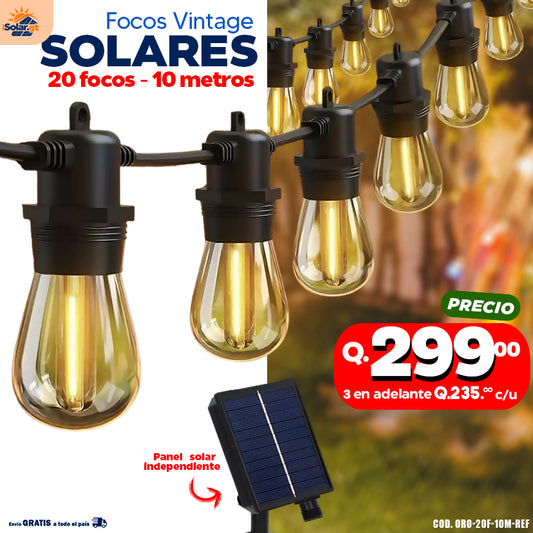 Focos Vintage Solares 10 Focos Y 10 Metros De Doble Funcion