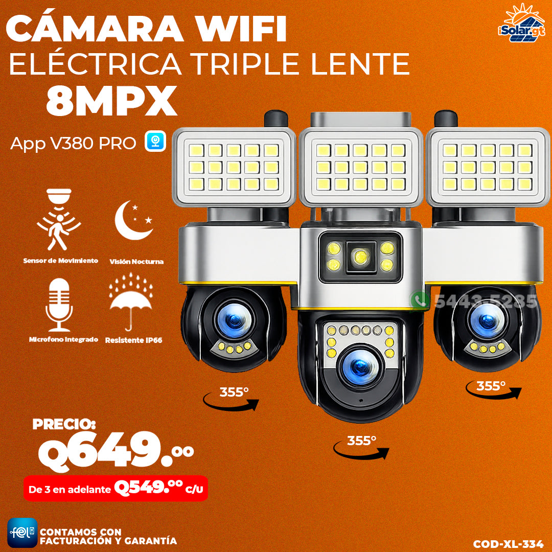 📷 Cámara Wi-Fi de 3 Lentes para Exterior