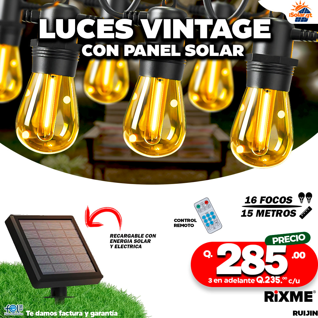 Focos Vintage Solares 16 Focos Y 15 Metros De Doble Funcion